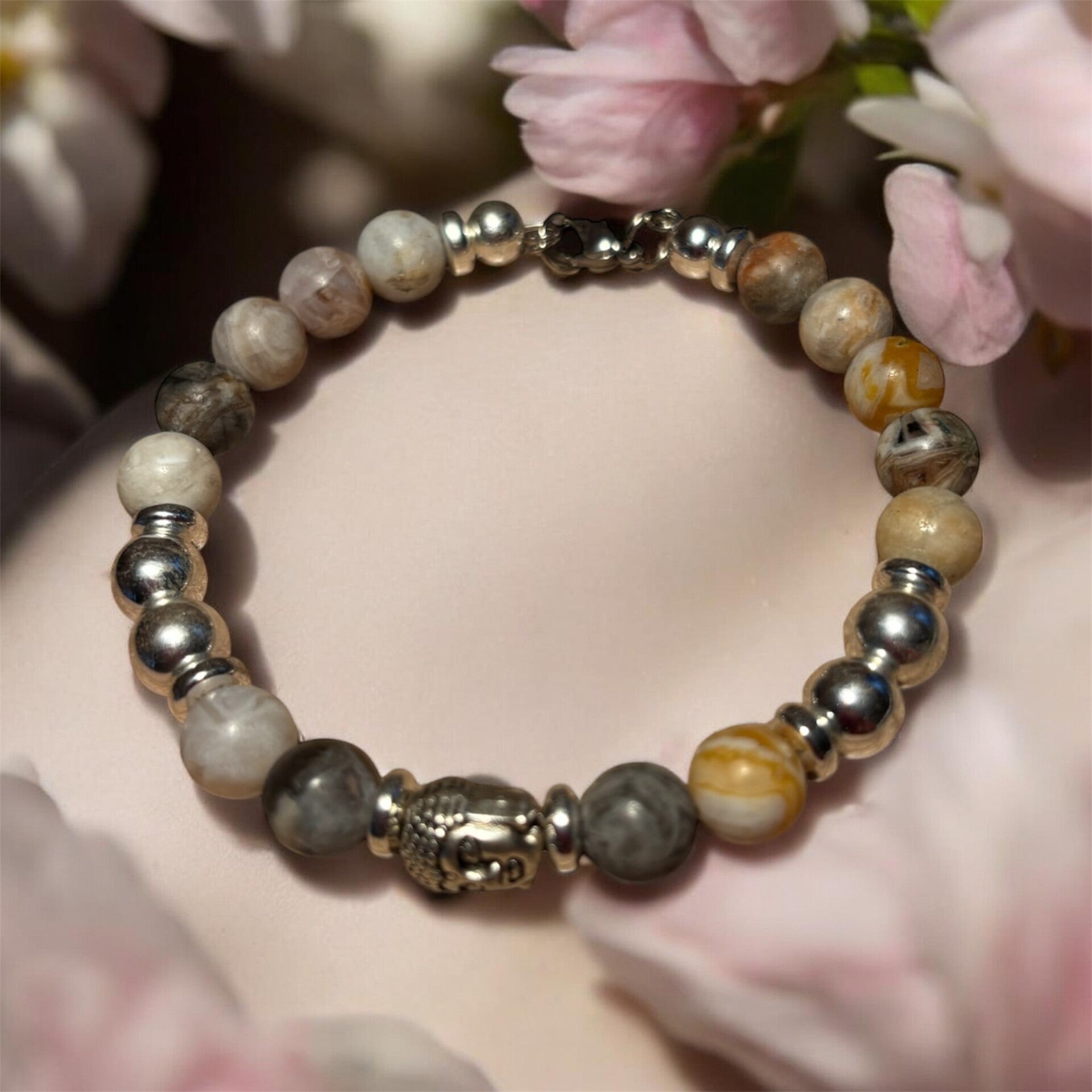 L’agate bambou est une variété d’agate à motifs verts et blancs rappelant la tige de bambou. Elle est reconnue pour sa vibration apaisante et équilibrante, idéale pour le bien-être émotionnel et la connexion à la nature.